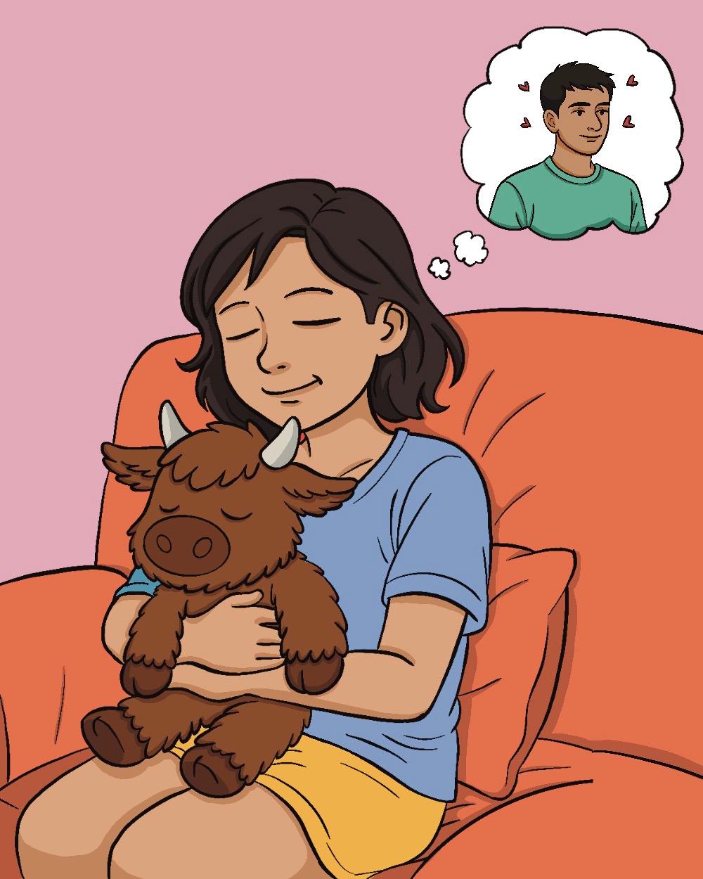 I have been in a long distance relationship with my boyfriend for over an year. While it has been a fantastic relationship it has not always been easy due to the distance. He got me Marmalade the cow for my birthday and it has been so comforting. Obviously it’s not having him to cuddle, but it has very much become our baby. It is always there after a hard day or even when I cannot speak to him due to time difference. I really love warming it and cuddling it when we sleep on face time because it is like having a piece of him to hold on to.