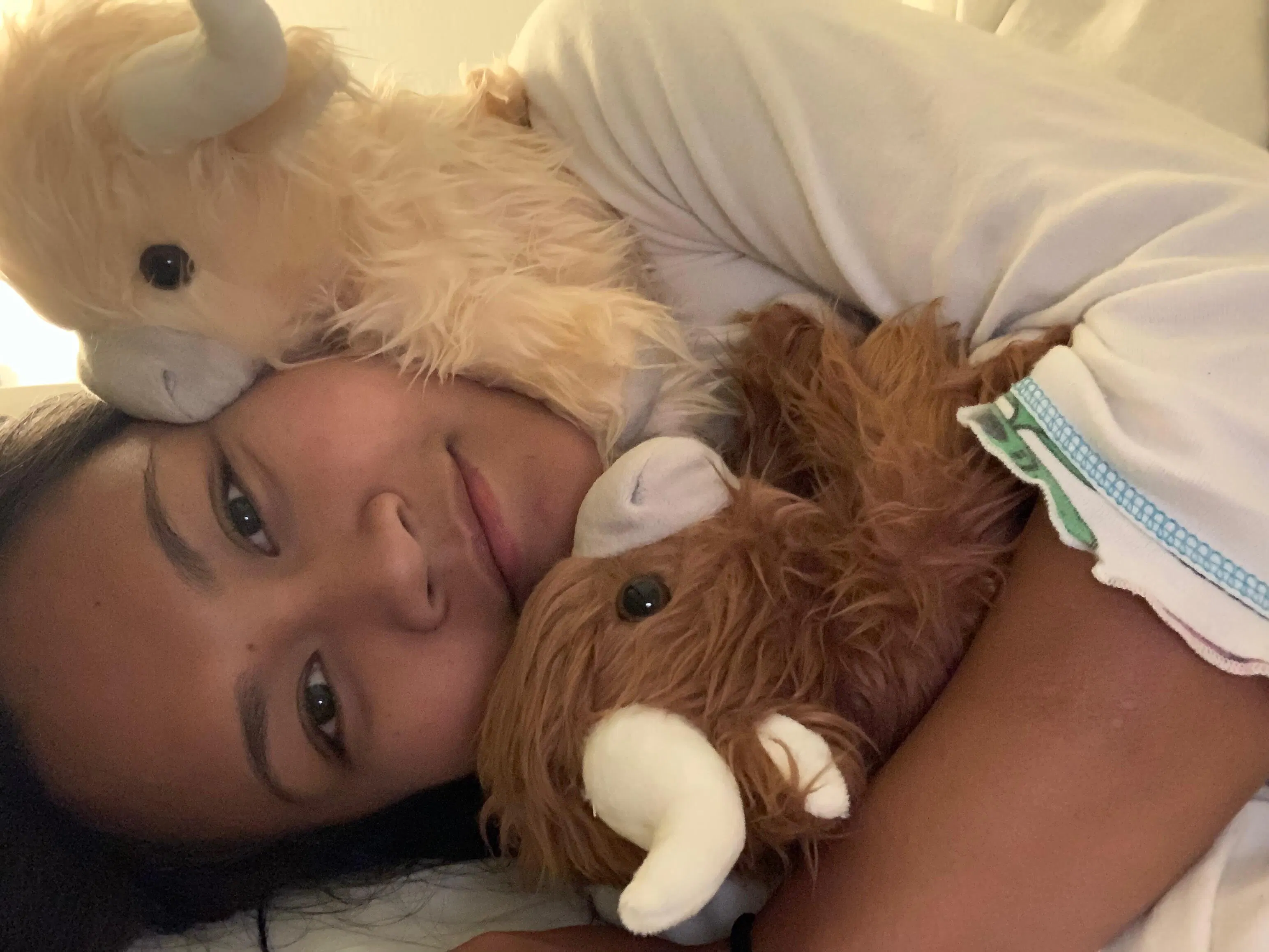 “Hazel has been my go-to cuddle buddy since I got her! She's soft, and her weight gives me the comfort I need when I feel anxious.” - Sarah R.